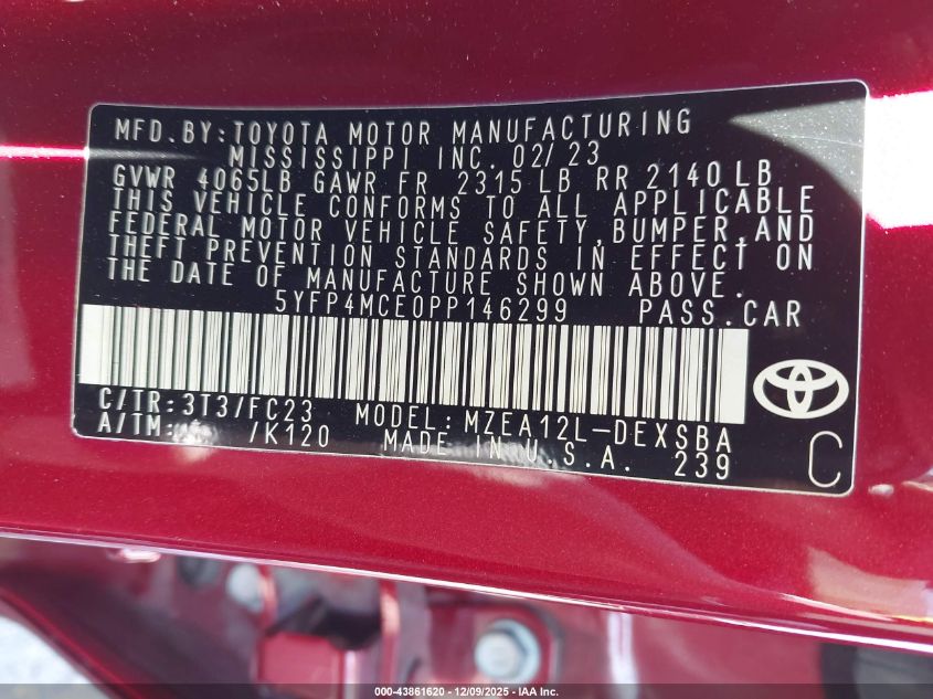 2023 TOYOTA COROLLA - 5YFP4MCE0PP146299, цвет - Красный, 2.0, Бензин, Передний привод из США