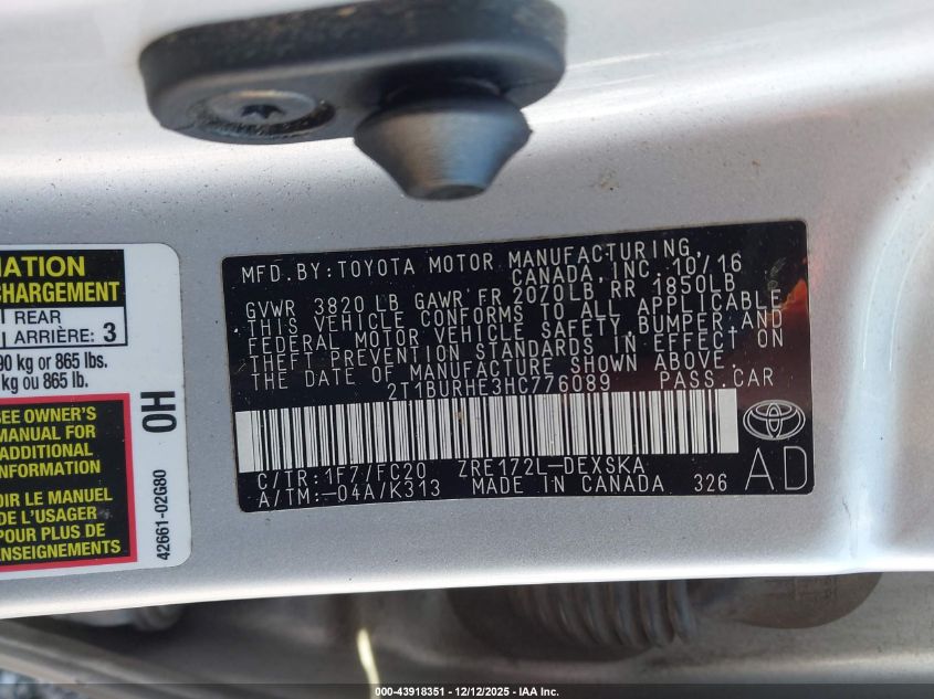 2017 TOYOTA COROLLA L
