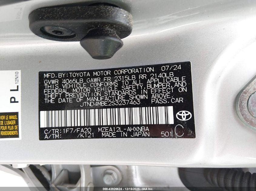 2025 TOYOTA COROLLA - JTND4MBE2S3237463, цвет - Серебряный, 2.0, Бензин, Передний привод из США