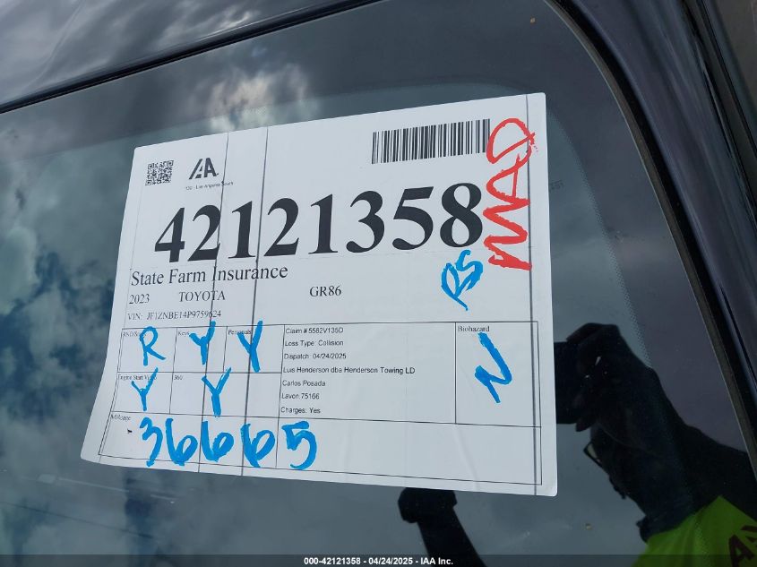 2023 TOYOTA GR86 - JF1ZNBE14P9759624, цвет - Черный, 2.4, Бензин, Задний привод из США