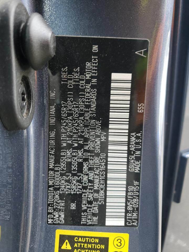 Цвет СинийЦилиндры 6Привод Полный приводVIN 5TDBK3EH1CS164510Состояние НеизвестноПовреждения Передняя или задняя