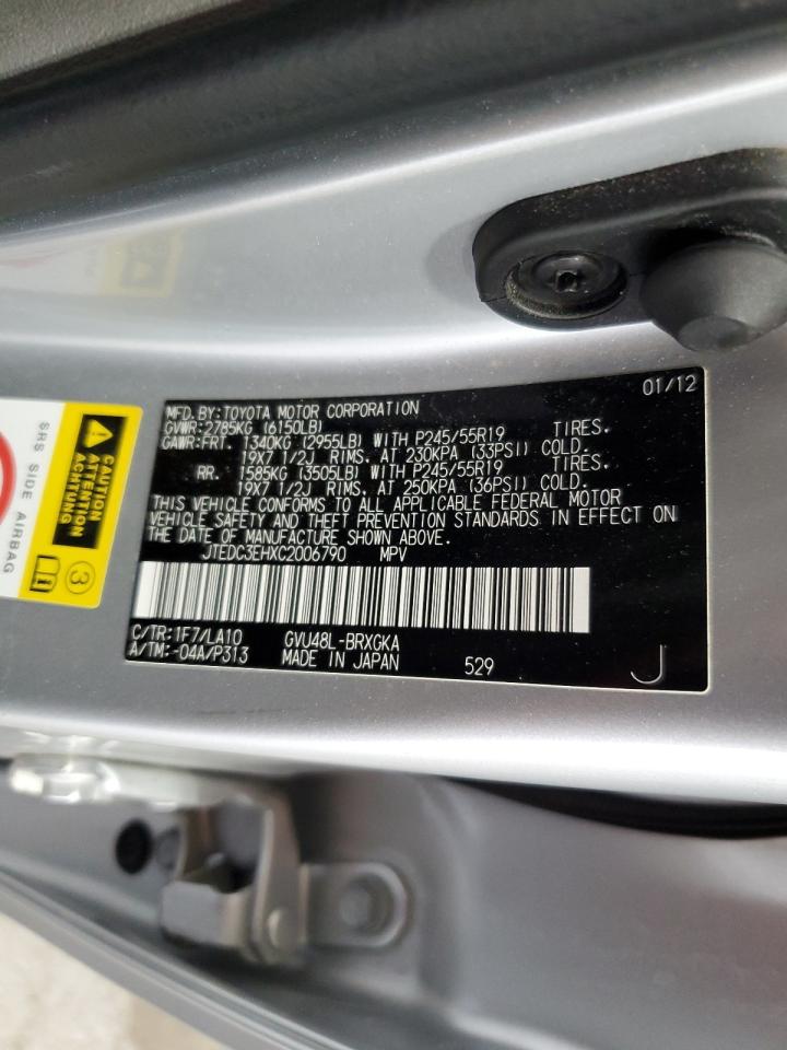 Цвет СеребряныйЦилиндры 6Привод Полный приводVIN JTEDC3EHXC2006790Состояние НеизвестноПовреждения По всему авто