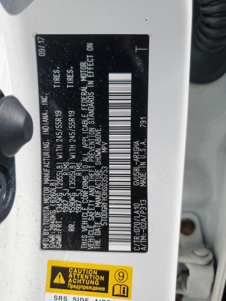 2017 TOYOTA HIGHLANDER - 5TDDGRFH3HS035753, цвет - Белый, 3.5, Гибрид, Полный привод из США