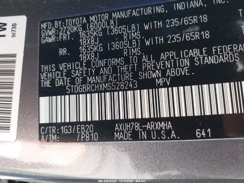 2021 TOYOTA HIGHLANDER HYBRID XLE
