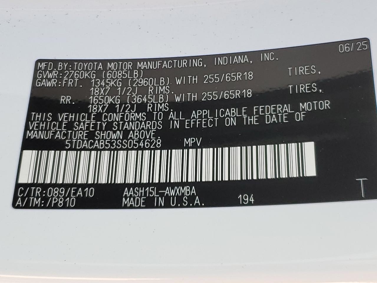 2025 TOYOTA HIGHLANDER - 5TDACAB53SS054628, цвет - Белый, 2.5, Гибрид, Полный привод из США