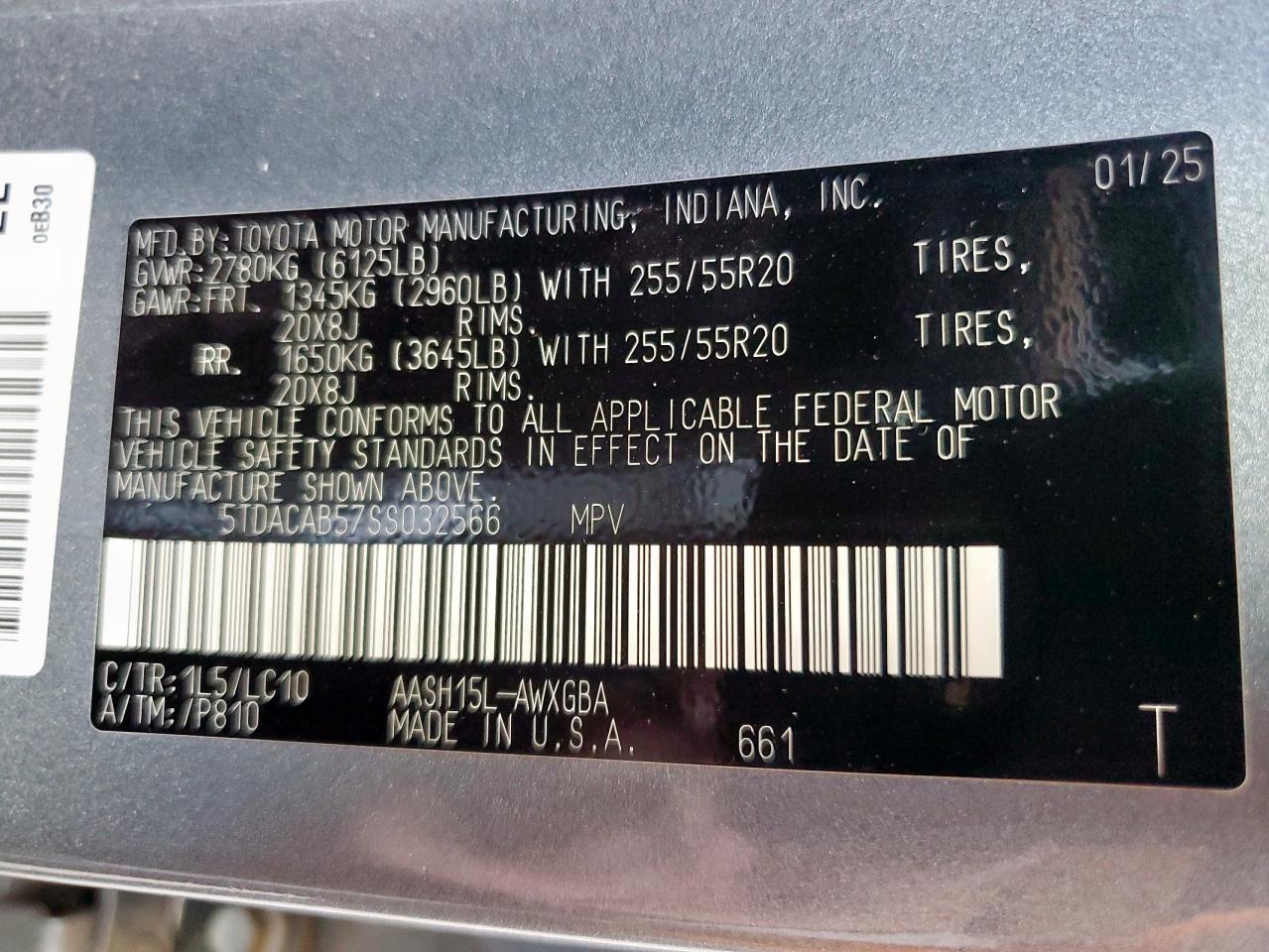 Цвет СерыйЦилиндры 4Привод Полный приводVIN 5TDACAB57SS032566Состояние НеизвестноПовреждения Передняя или задняяДата аукциона 2025-10-10