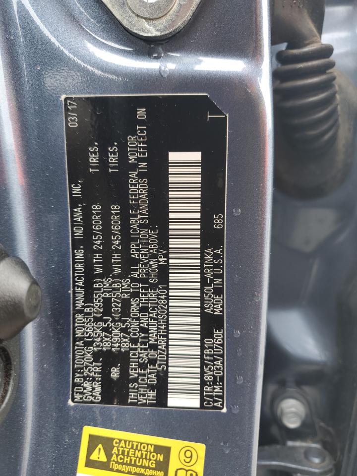 2017 TOYOTA HIGHLANDER - 5TDZARFH4HS028401, цвет - Синий, 2.7, Бензин, из США