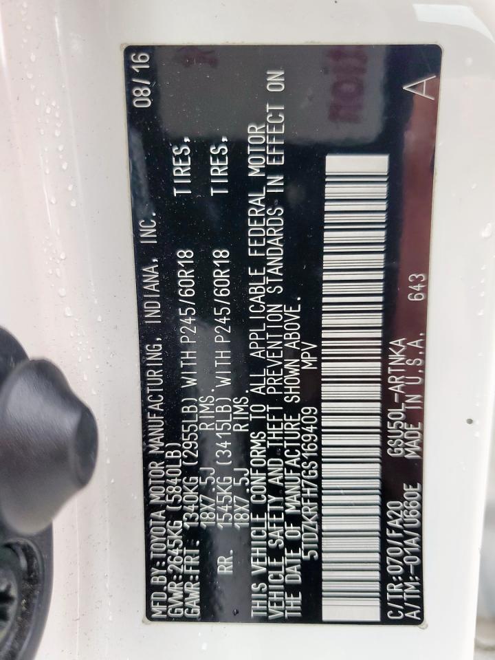 2016 TOYOTA HIGHLANDER - 5TDZKRFH7GS169409, цвет - Белый, 3.5, Бензин, из США