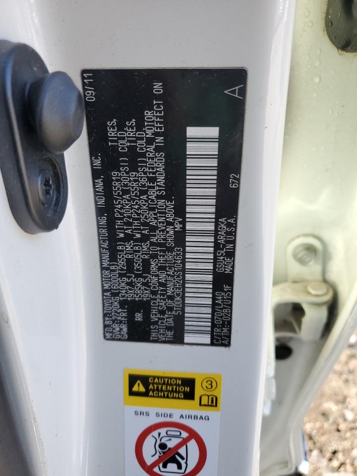 2012 TOYOTA HIGHLANDER - 5TDDK3EH2CS104633, цвет - Белый, 3.5, Бензин, Полный привод из США