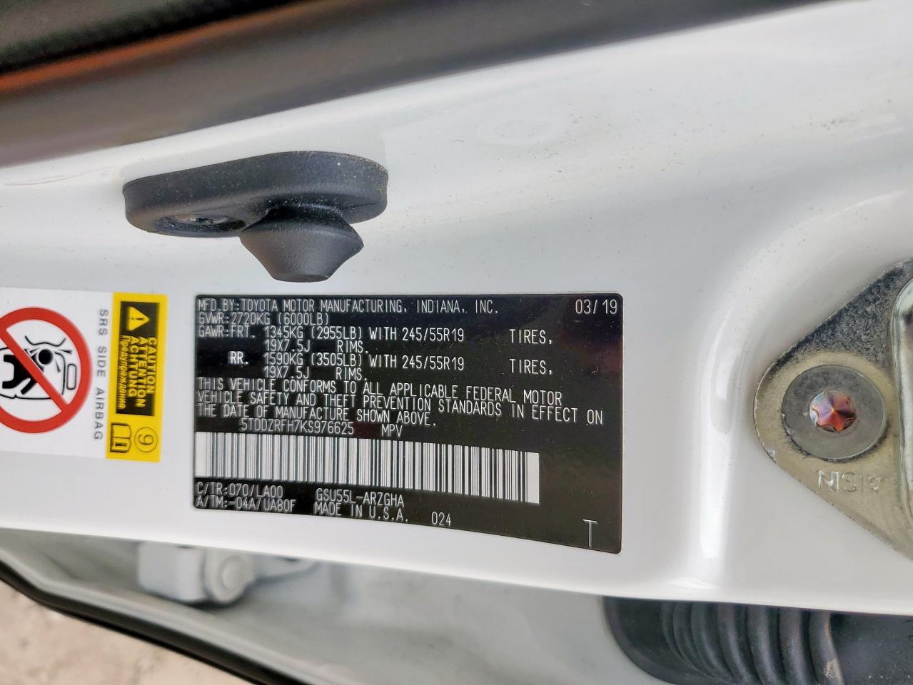 2019 TOYOTA HIGHLANDER - 5TDDZRFH7KS976625, цвет - Белый, 3.5, Бензин, Полный привод из США
