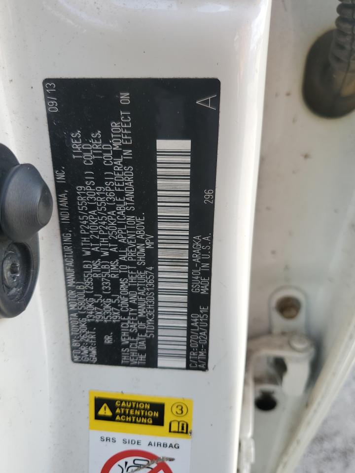 2013 TOYOTA HIGHLANDER - 5TDYK3EH3DS136574, цвет - Белый, 3.5, Бензин, из США