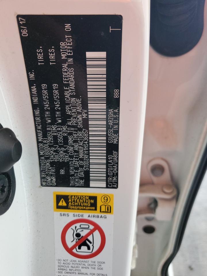 2017 TOYOTA HIGHLANDER - 5TDDZRFH1HS436857, цвет - Белый, 3.5, Бензин, Полный привод из США