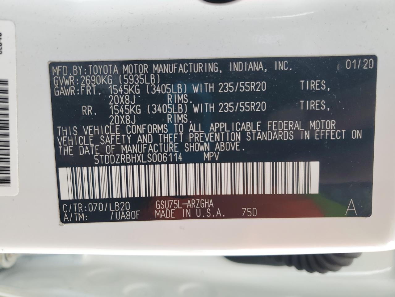 Цвет БелыйЦилиндры 6Привод Полный приводVIN 5TDDZRBHXLS006114Состояние Заводится и едет (проверено)Повреждения Передняя или задняяДата аукциона 2025-10-08