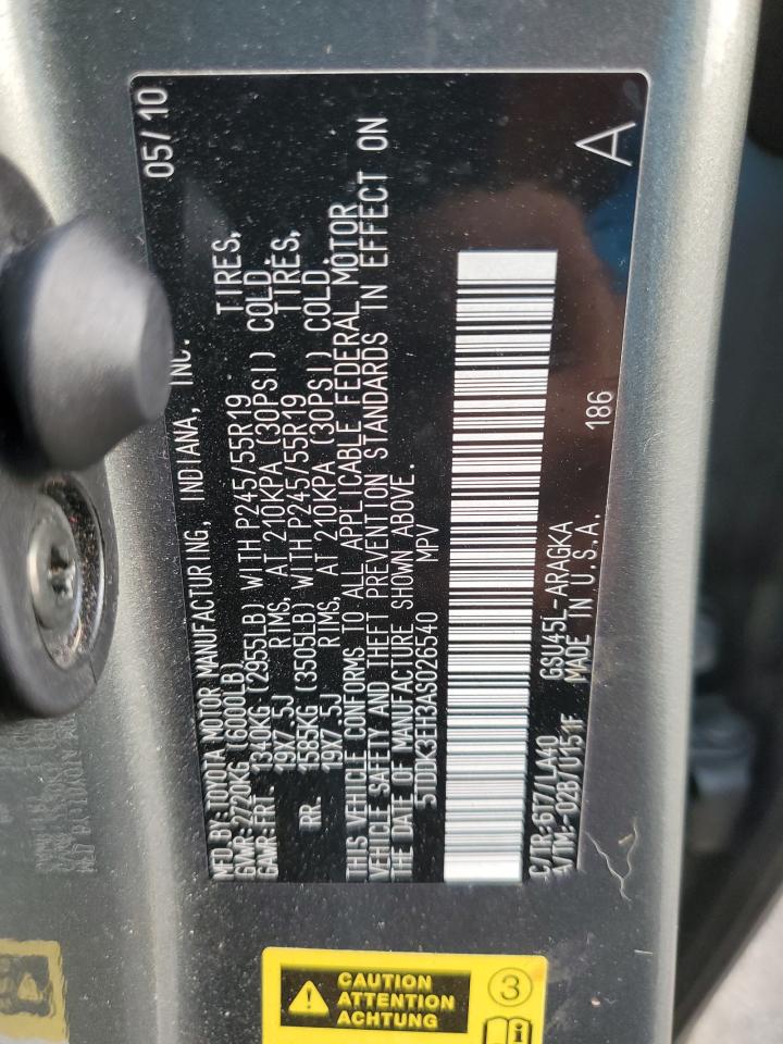 2010 TOYOTA HIGHLANDER - 5TDDK3EH3AS026540, цвет - Зеленый, 3.5, Бензин, Полный привод из США