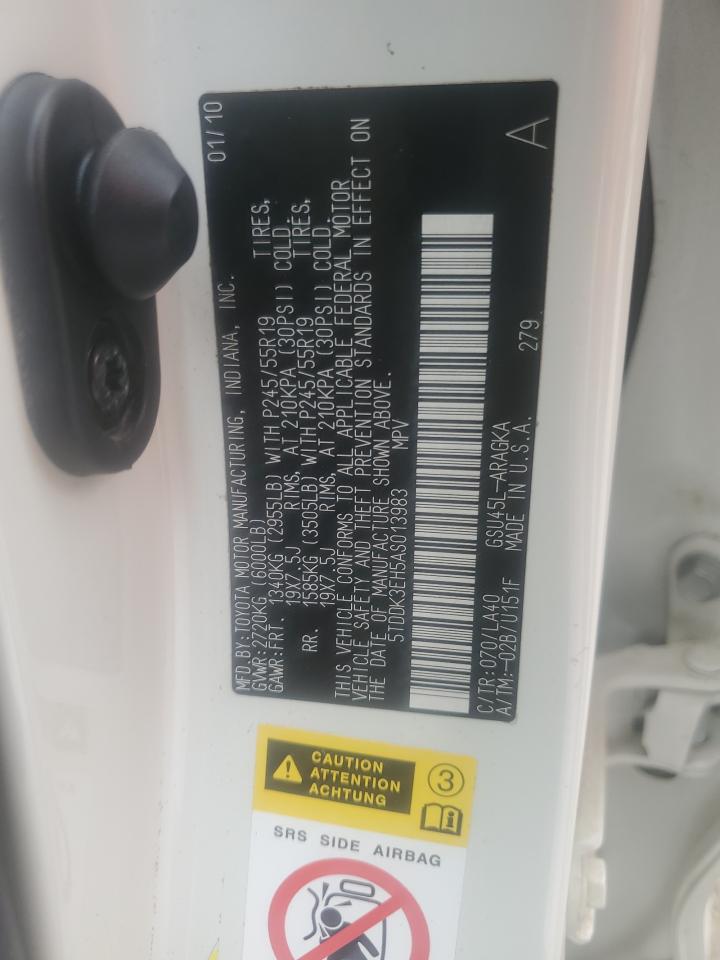 2010 TOYOTA HIGHLANDER - 5TDDK3EH5AS013983, цвет - Белый, 3.5, Бензин, Полный привод из США
