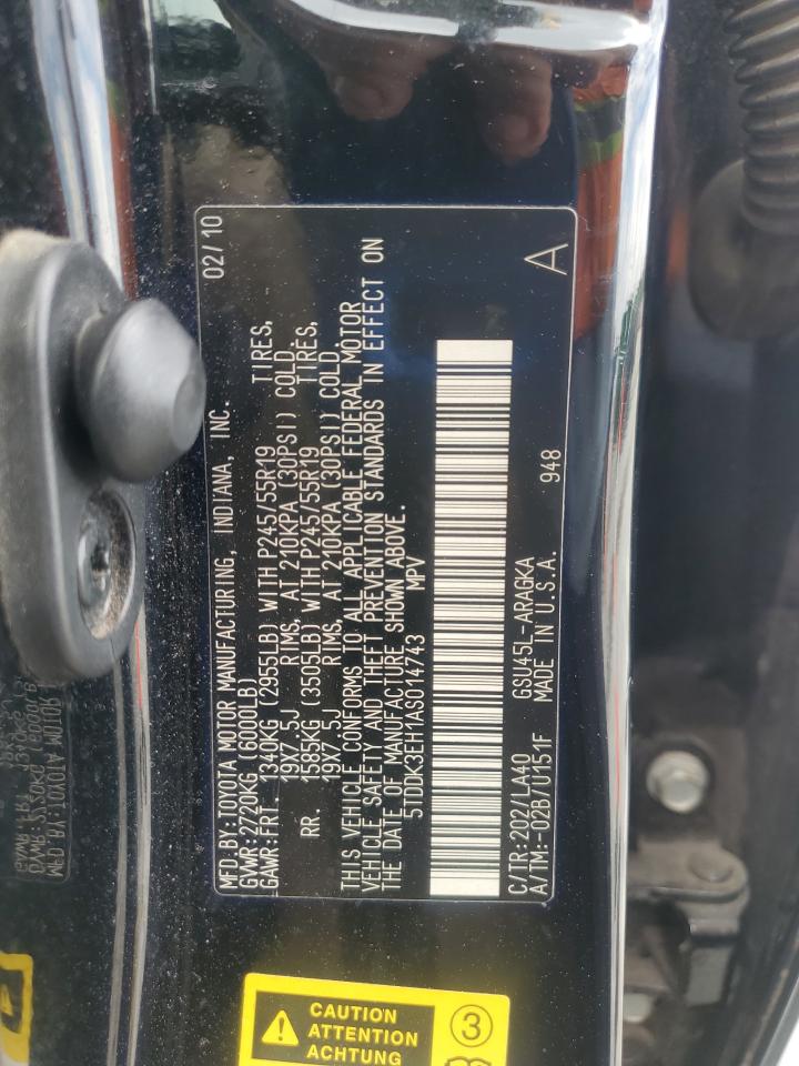 2010 TOYOTA HIGHLANDER - 5TDDK3EH1AS014743, цвет - Черный, 3.5, Бензин, Полный привод из США