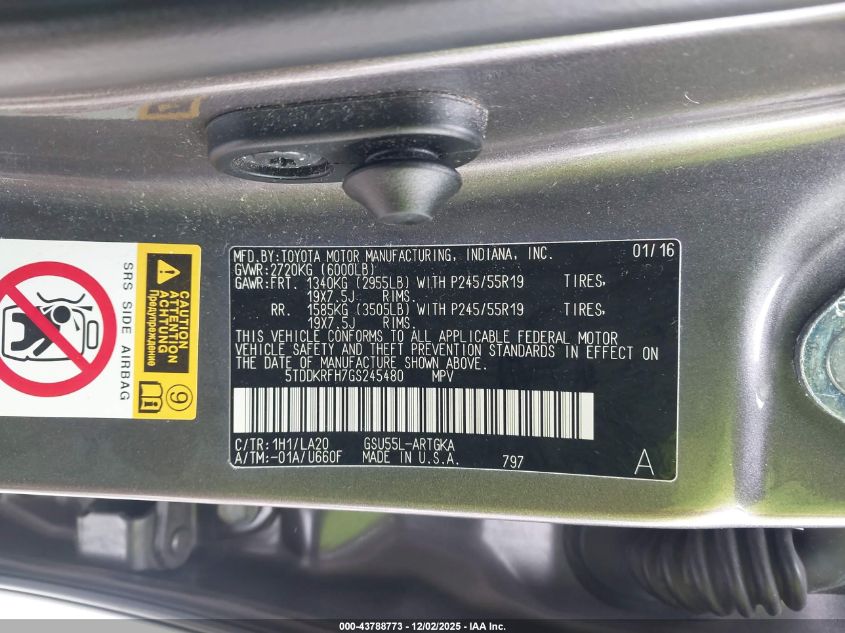 2016 TOYOTA HIGHLANDER - 5TDDKRFH7GS245480, цвет - Серый, 3.5, Бензин, Полный привод из США