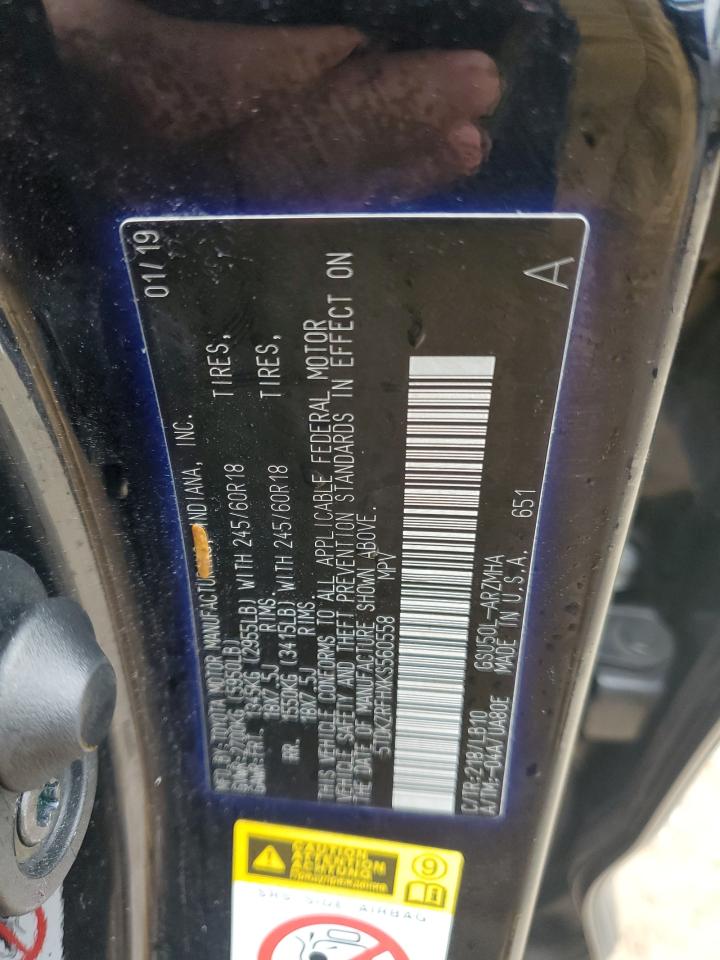 2019 TOYOTA HIGHLANDER - 5TDKZRFHXKS560558, цвет - Черный, 3.5, Бензин, из США
