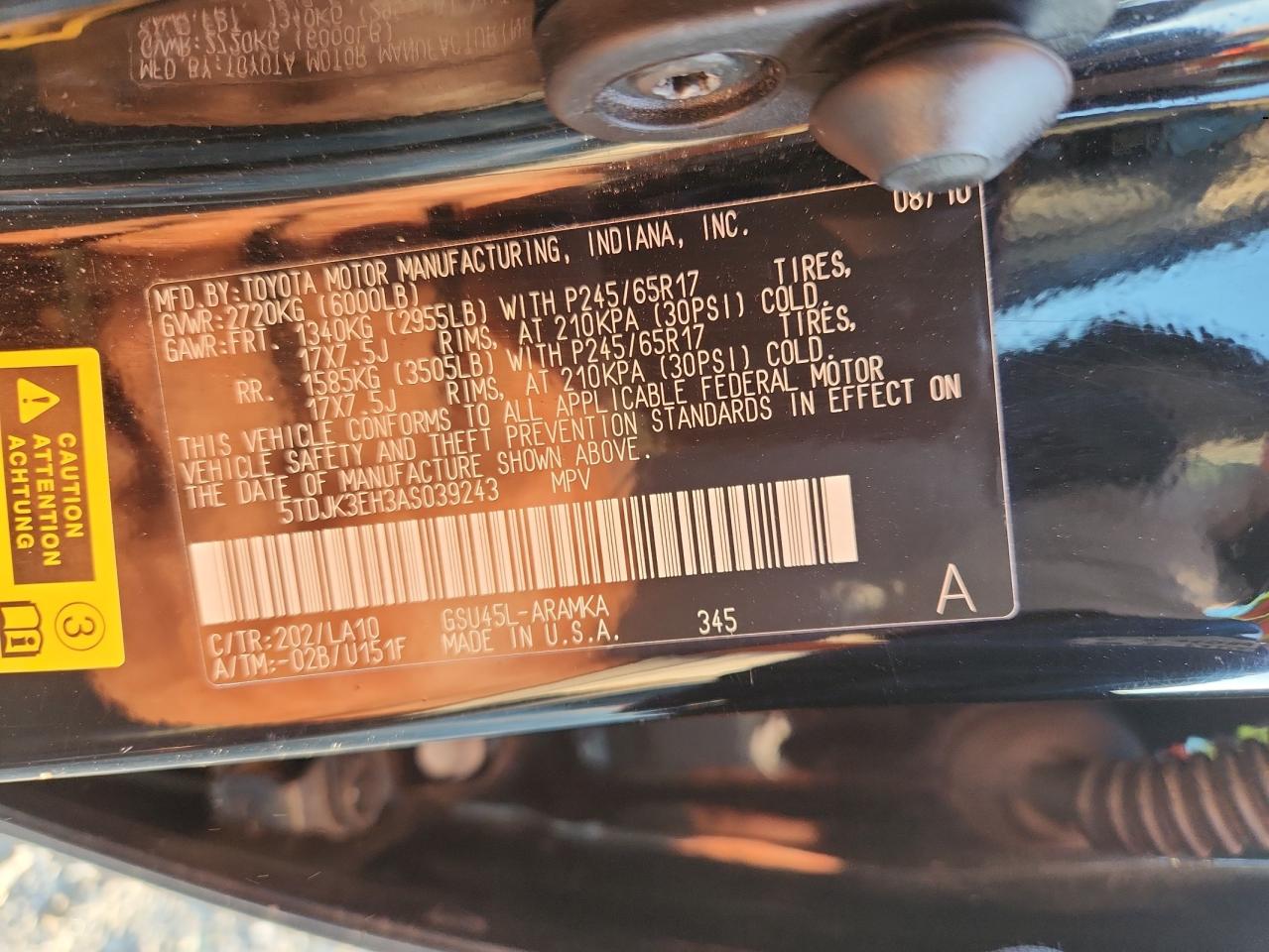 2010 TOYOTA HIGHLANDER - 5TDJK3EH3AS039243, цвет - Черный, 3.5, Бензин, Полный привод из США