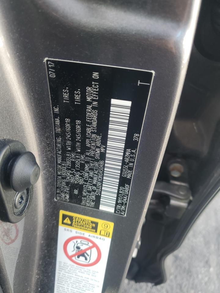 2017 TOYOTA HIGHLANDER - 5TDJZRFH3HS450486, цвет - Серый, 3.5, Бензин, Полный привод из США