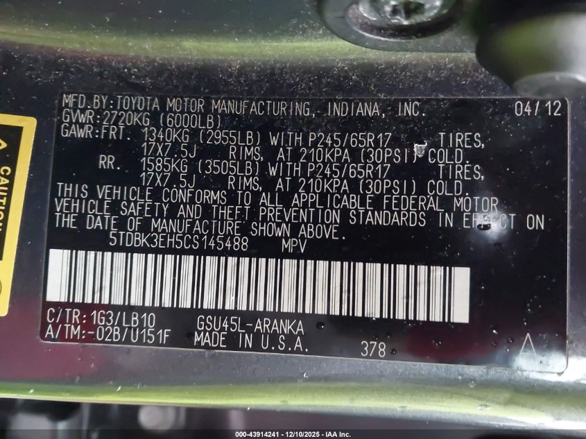2012 TOYOTA HIGHLANDER LIMITED