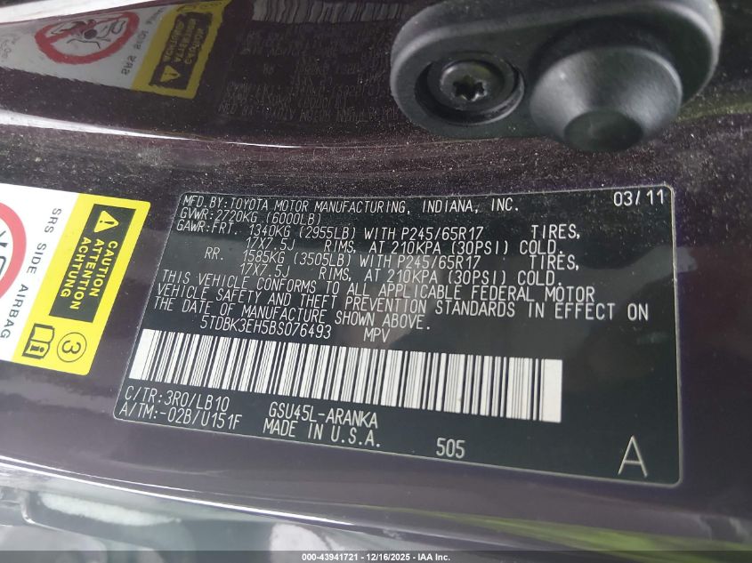 2011 TOYOTA HIGHLANDER - 5TDBK3EH5BS076493, цвет - , 3.5, Бензин, Полный привод из США