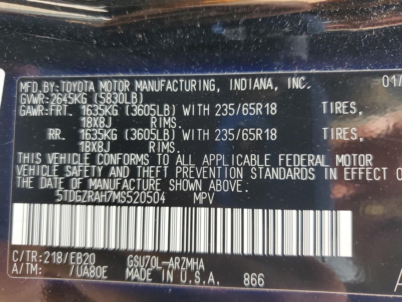 2021 TOYOTA HIGHLANDER - 5TDGZRAH7MS520504, цвет - Черный, 3.5, Бензин, из США