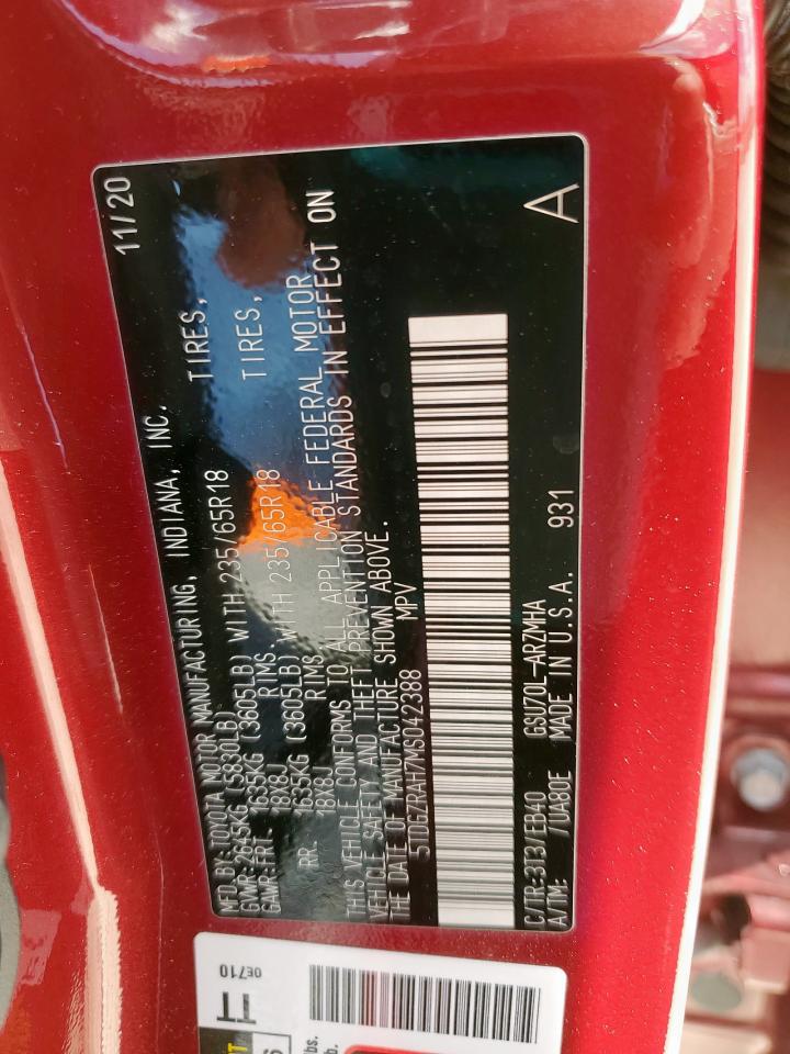 2021 TOYOTA HIGHLANDER - 5TDGZRAH7MS042388, цвет - Красный, 3.5, Бензин, из США