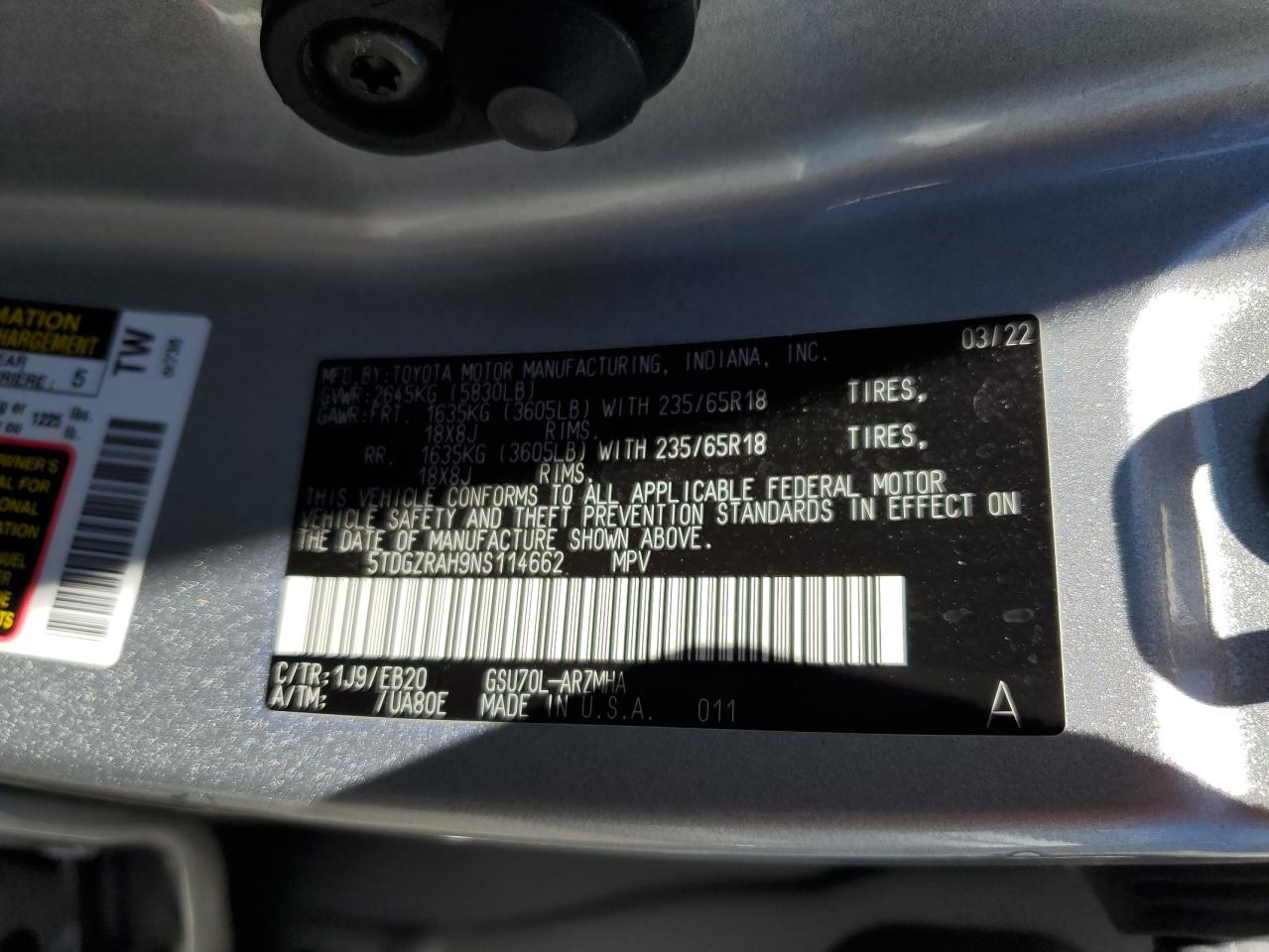 2022 TOYOTA HIGHLANDER - 5TDGZRAH9NS114662, цвет - Серебряный, 3.5, Бензин, из США