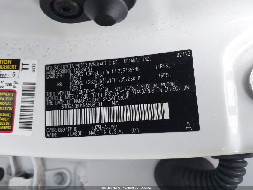 2022 TOYOTA HIGHLANDER - 5TDGZRBH4NS568591, цвет - Серый, 3.5, Бензин, Полный привод из США