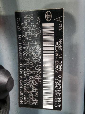 2012 TOYOTA PRIUS - JTDKN3DU1C5426022, цвет - Синий, 1.8, Гибрид, из США