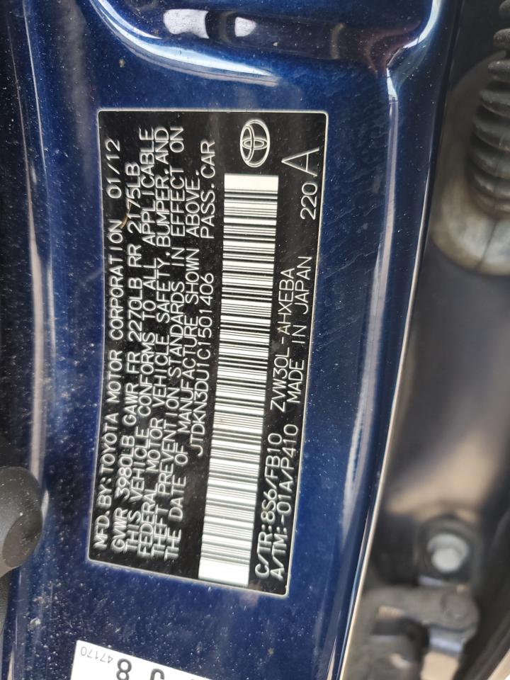 2012 TOYOTA PRIUS - JTDKN3DU1C1501406, цвет - Синий, 1.8, Гибрид, из США