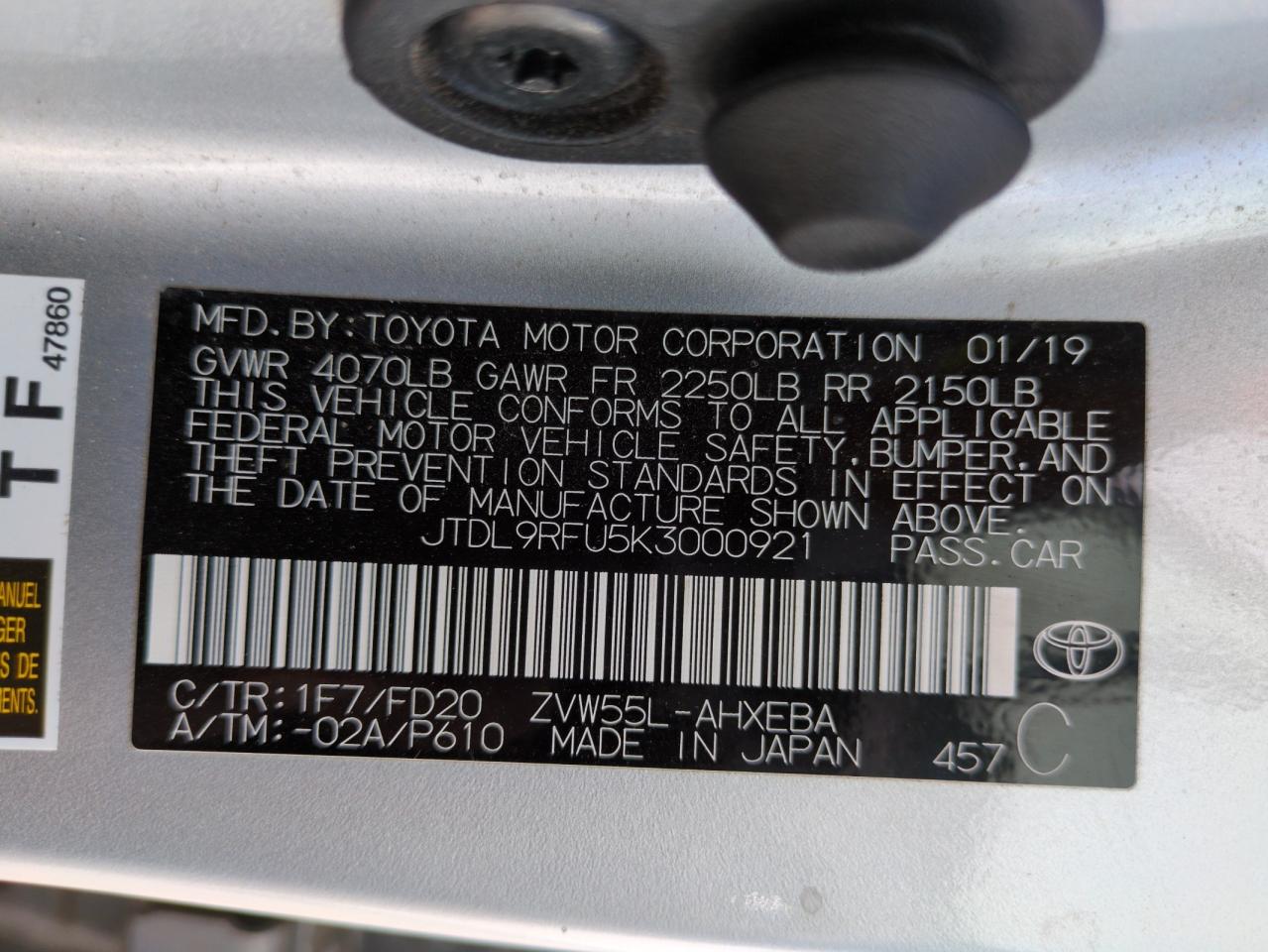 2019 TOYOTA PRIUS - JTDL9RFU5K3000921, цвет - Серебряный, 1.8, Гибрид, Полный привод из США