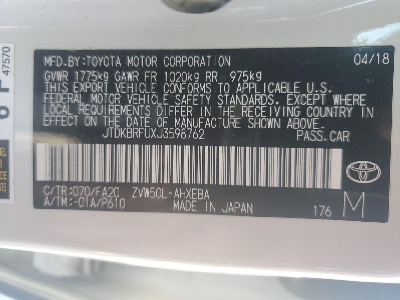 2018 TOYOTA PRIUS - JTDKBRFUXJ3598762, цвет - Белый, 1.8, Гибрид, из США