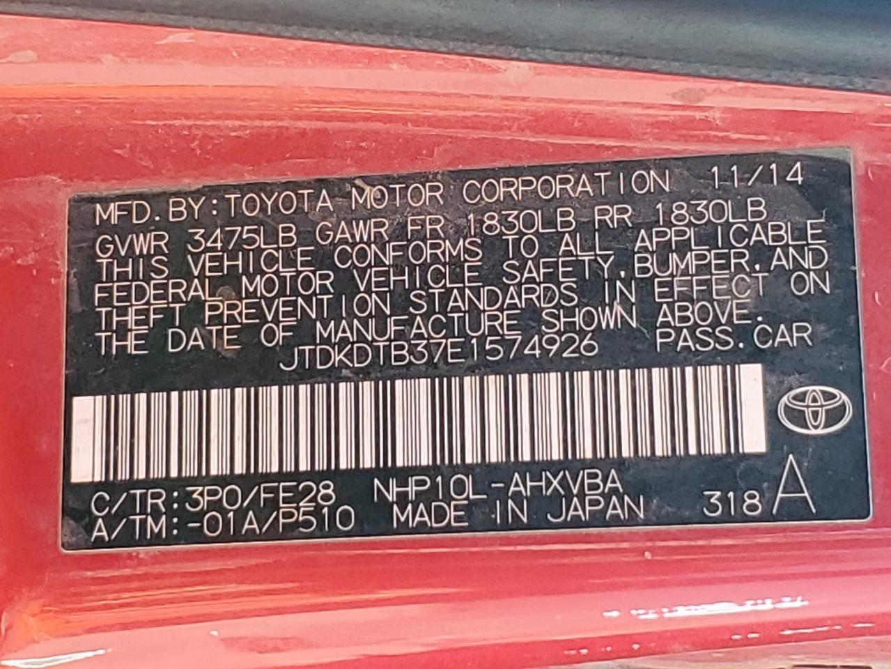 2014 TOYOTA PRIUS C - JTDKDTB37E1574926, цвет - Красный, 1.5, Гибрид, из США