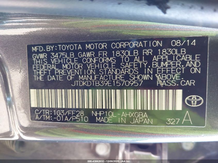 Цвет СерыйЦилиндры 4Привод Передний приводVIN JTDKDTB39E1570957Состояние Заводится и едет (проверено)Повреждения Обычный износДата аукциона 2025-12-17