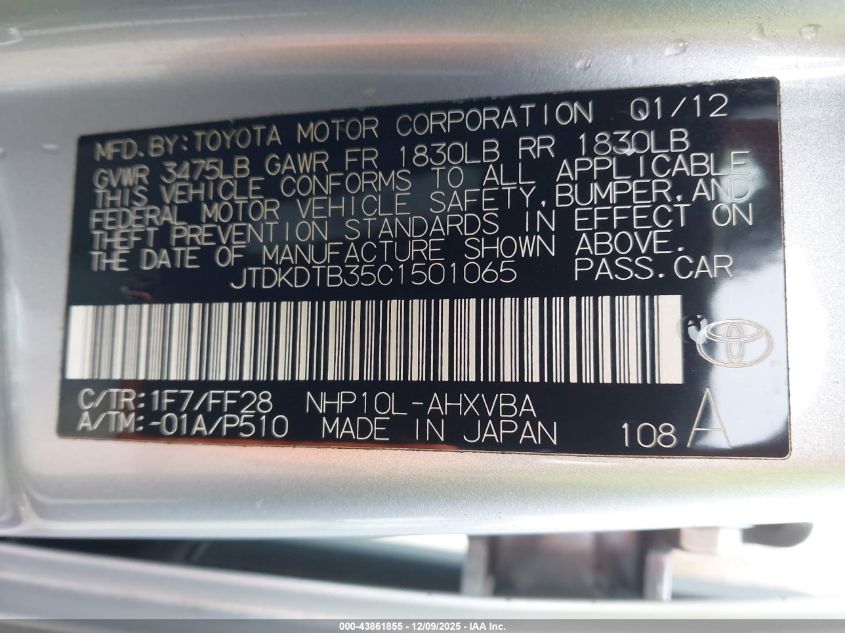 2012 TOYOTA PRIUS C - JTDKDTB35C1501065, цвет - Серебряный, 1.5, Гибрид, Передний привод из США