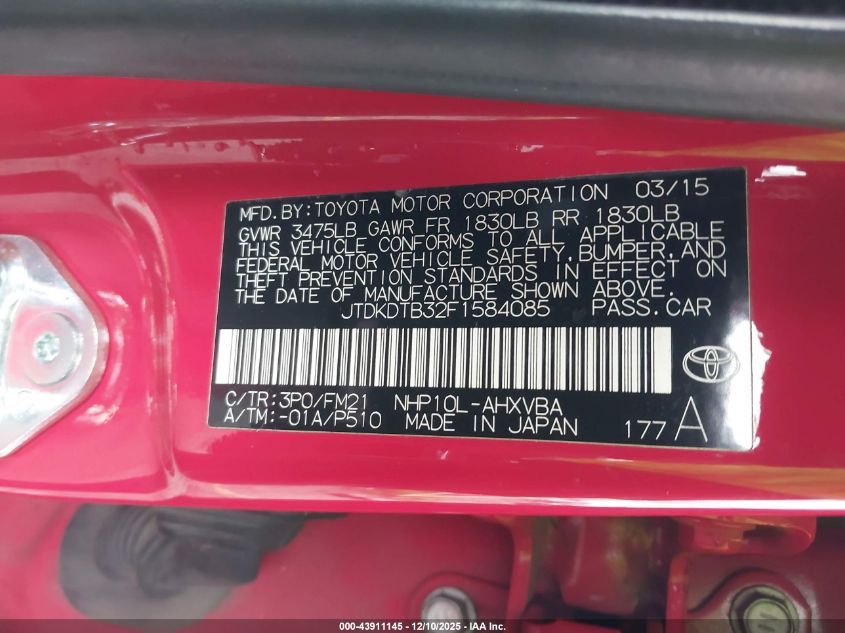 Цвет КрасныйЦилиндры 4Привод Передний приводVIN JTDKDTB32F1584085Состояние Заводится и едет (проверено)Повреждения Передняя или задняя