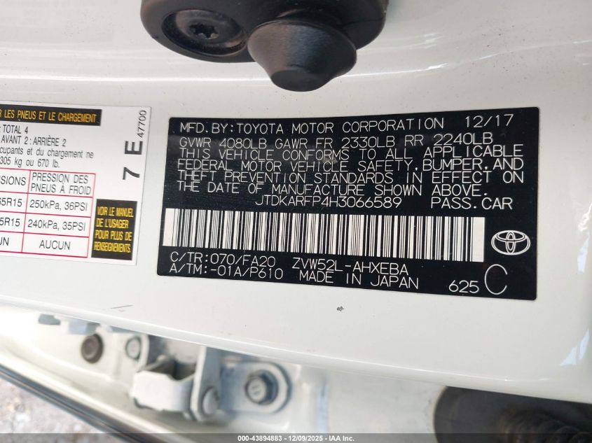 Цвет БелыйЦилиндры 4Привод Передний приводVIN JTDKARFP4H3066589Состояние СтационарноПовреждения Передняя или задняя