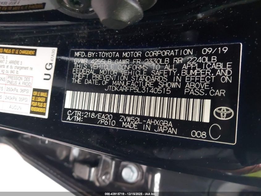 Цвет ЧерныйЦилиндры 4Привод Передний приводVIN JTDKARFP5L3140515Состояние СтационарноПовреждения Передняя или задняя