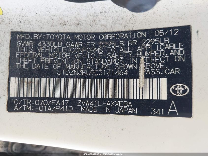 Цвет БелыйЦилиндры 4Привод Передний приводVIN JTDZN3EU9C3141464Состояние СтационарноПовреждения Обычный износДата аукциона 2025-12-17