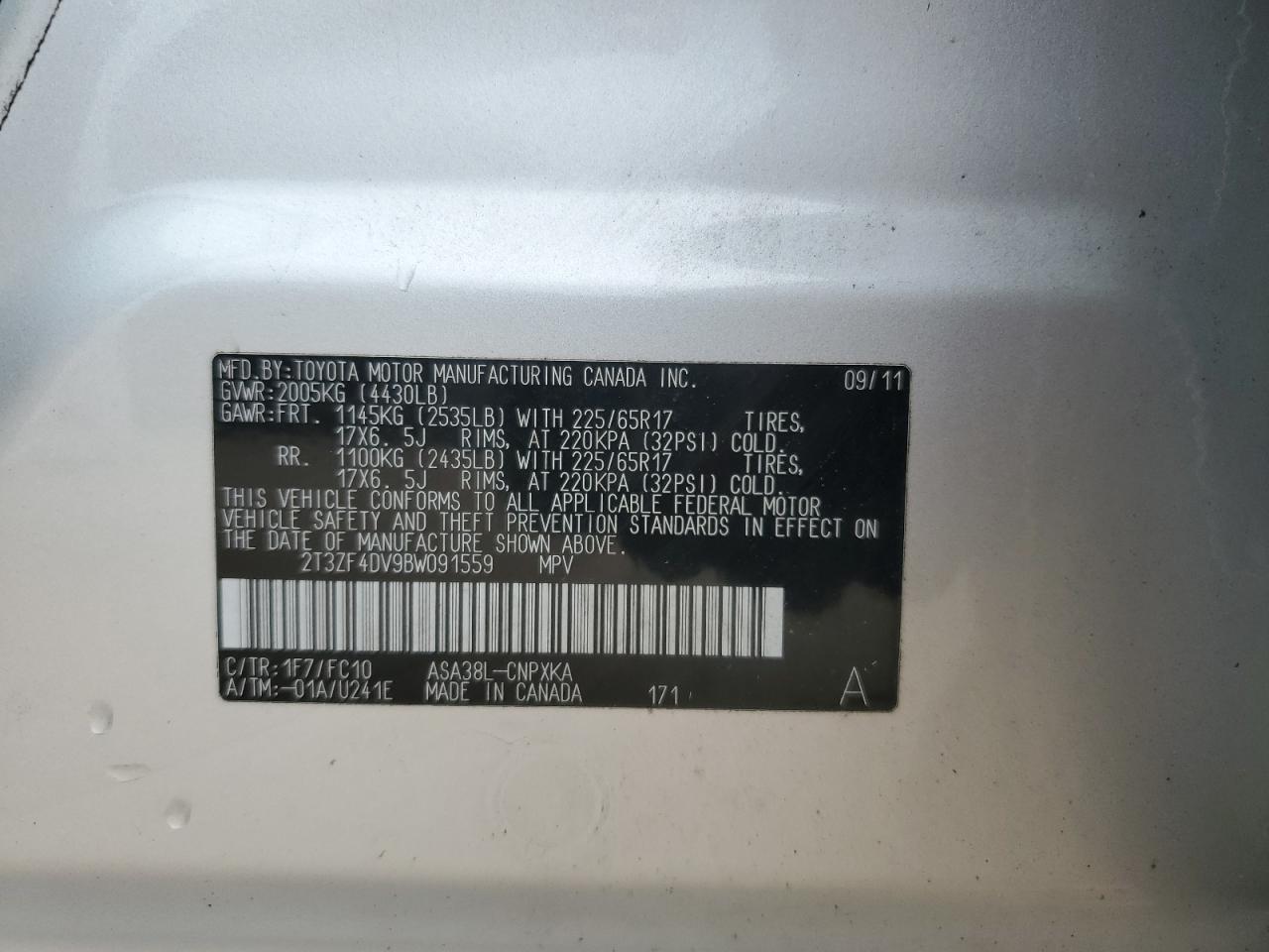 2011 TOYOTA RAV4 - 2T3ZF4DV9BW091559, цвет - Серебряный, 2.5, Бензин, из США