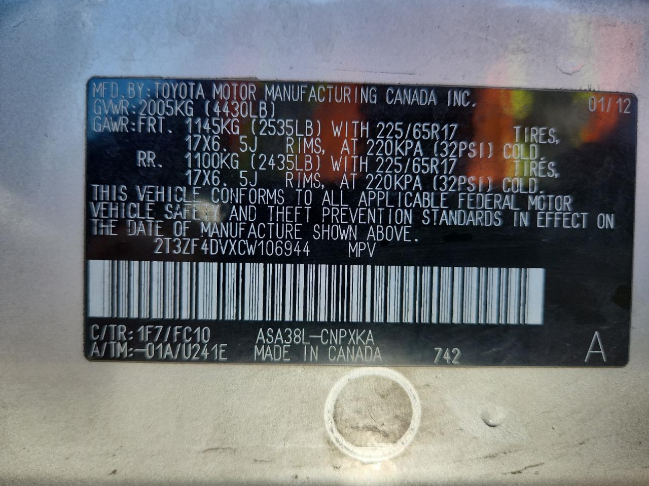 2012 TOYOTA RAV4 - 2T3ZF4DVXCW106944, цвет - Серебряный, 2.5, Бензин, из США