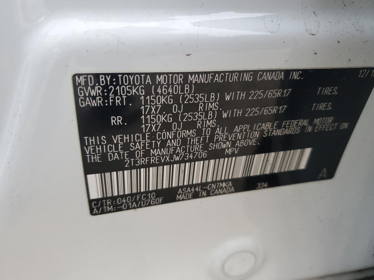 2018 TOYOTA RAV4 - 2T3RFREVXJW734706, цвет - Белый, 2.5, Бензин, Полный привод из США