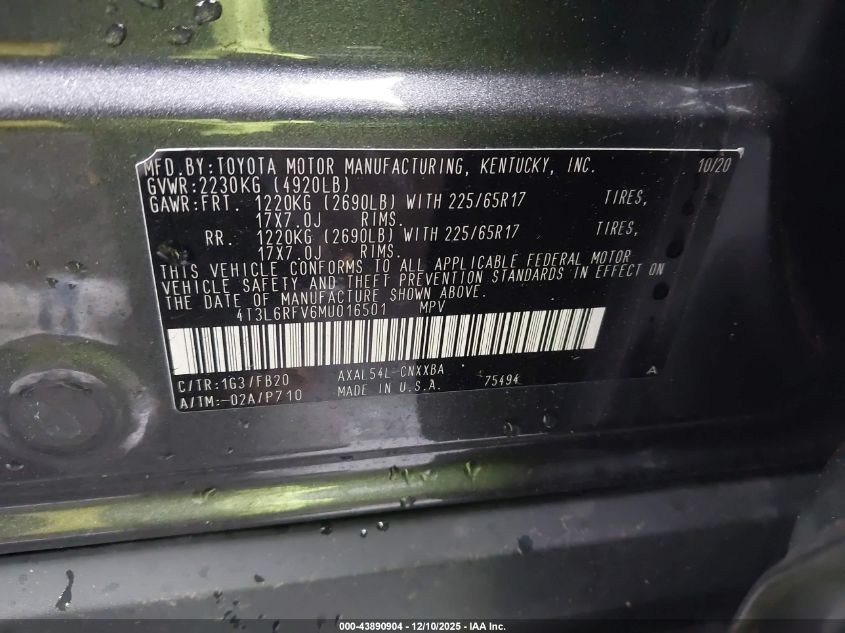 2021 TOYOTA RAV4 HYBRID - 4T3L6RFV6MU016501, цвет - Серый, 2.5, Гибрид, Полный привод из США