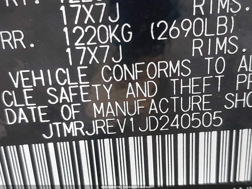 Цвет СеребряныйЦилиндры 4Привод Полный приводVIN JTMRJREV1JD240505Состояние СтационарноПовреждения Передняя левая