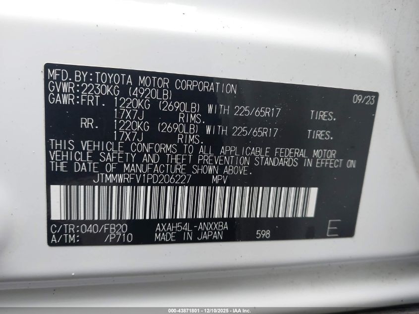 2023 TOYOTA RAV4 HYBRID - JTMMWRFV1PD206227, цвет - Белый, 2.5, Гибрид, Полный привод из США