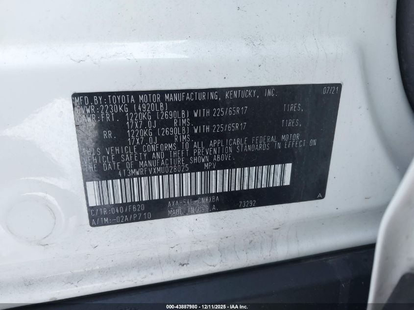 2021 TOYOTA RAV4 HYBRID - 4T3MWRFVXMU028025, цвет - Белый, 2.5, Гибрид, Полный привод из США