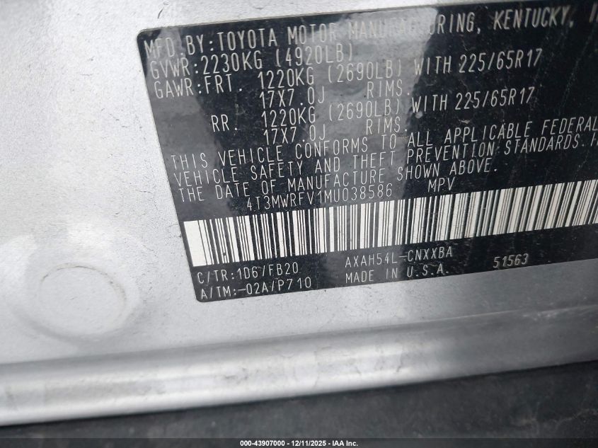 2021 TOYOTA RAV4 HYBRID - 4T3MWRFV1MU038586, цвет - Серебряный, 2.5, Гибрид, Полный привод из США