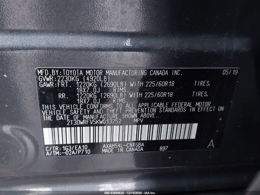 Цвет СерыйЦилиндры 4Привод Полный приводVIN 2T3DWRFV5KW013252Состояние Заводится и едет (проверено)Повреждения Передняя или задняя